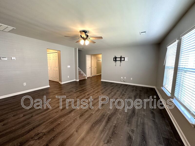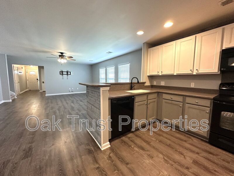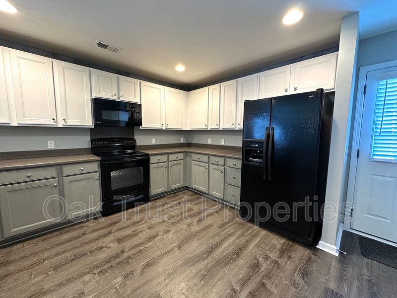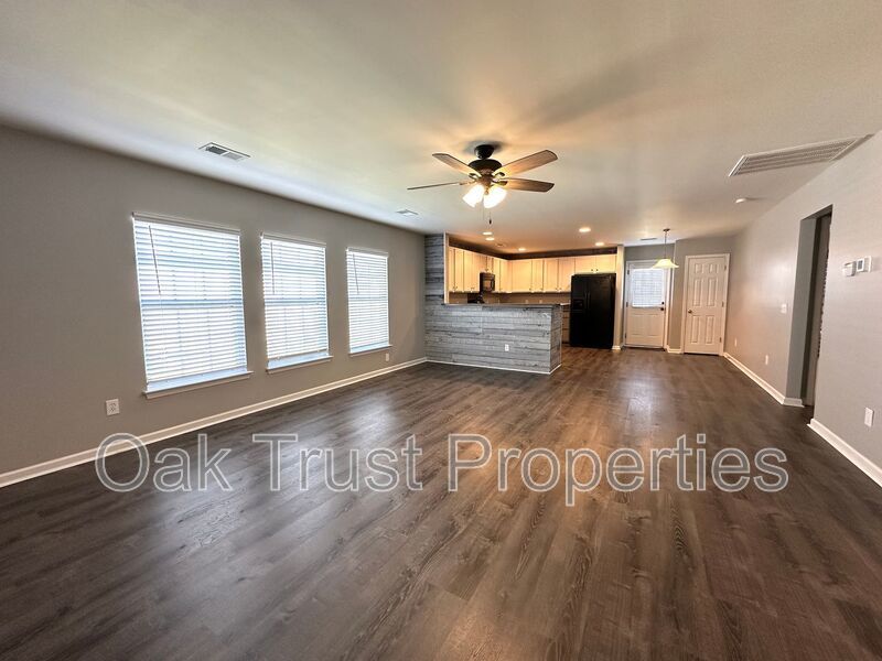 Spacious 4 bedroom, 2 bath home, available in Ladson! This beautiful property features an open floorplan with wood laminate flooring throughout the main living areas. The kitchen is equipped with black appliances, a breakfast bar, recessed lighting, and plenty of countertop and cabinet space. The primary bedroom, located on the first floor, includes a walk-in closet and an en suite bath with dual vanities, garden tub, and separate shower. Enjoy a fully fenced backyard a with deck and an attached two car garage. Do not miss this great opportunity!
