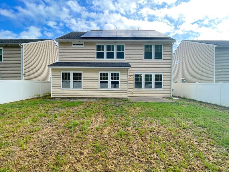 Welcome to this spacious 5-bedroom, 3.5-bathroom, two-story home in Moncks Corner! This beautiful property features laminate wood-style flooring on the main floor, a generous kitchen equipped with stainless steel appliances, granite countertops, a pantry, and ample cabinet space. Enjoy meals in the separate dining room or get work done in the dedicated office space. The upstairs primary suite offers a walk-in closet and a private en-suite bathroom with dual vanities and a stand-up shower. Notable highlights include a patio, fully fenced backyard, solar panels, and a 2-car garage. Washer and dryer are provided in "as-is" condition, with community pool and park access included. This home is a must-see!
