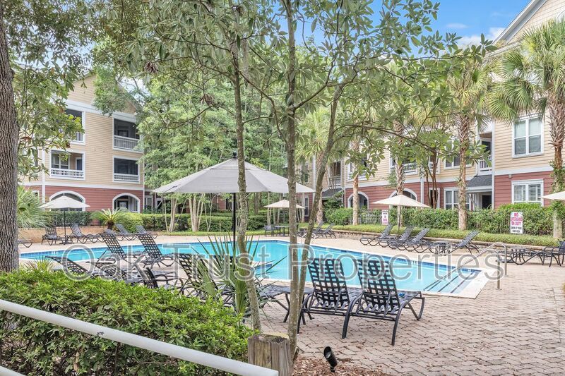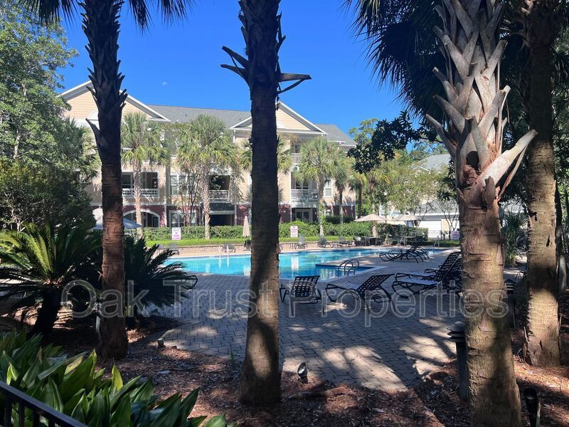 Welcome to 100 Bucksley Lane #104, a well-appointed 1-bedroom, 1-bathroom first-floor condo located in the heart of Daniel Island. This home offers 9-foot ceilings, updated floors, a fully equipped kitchen, a spacious walk-in closet in the primary bedroom, and a covered patio with additional storage. The washer and dryer are included in as-is condition, and water, sewer, and trash services are covered in the rent. Residents enjoy access to Seven Farms' exceptional amenities, including a landscaped pool area, fitness center, play park, and walking/jogging trails. Conveniently situated within walking distance to dining, shopping, parks, and more, this condo delivers both comfort and convenience.