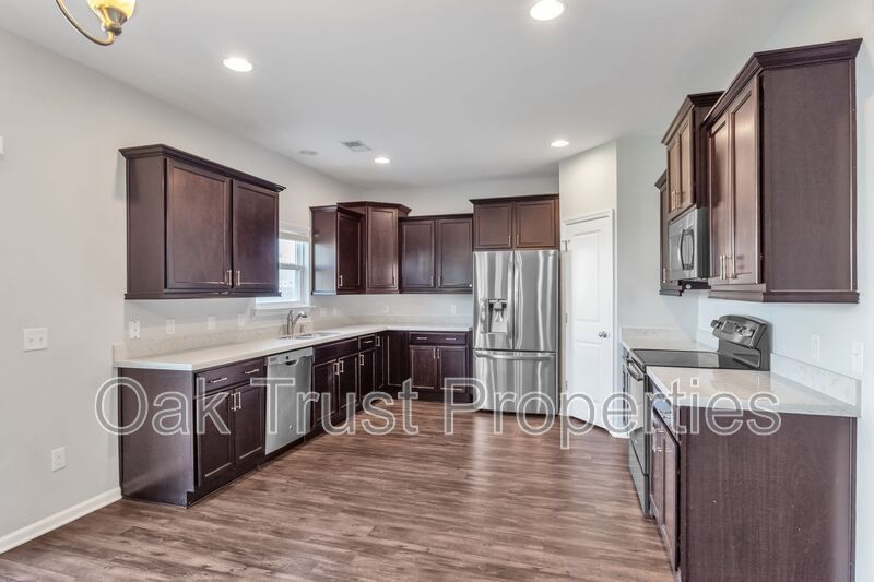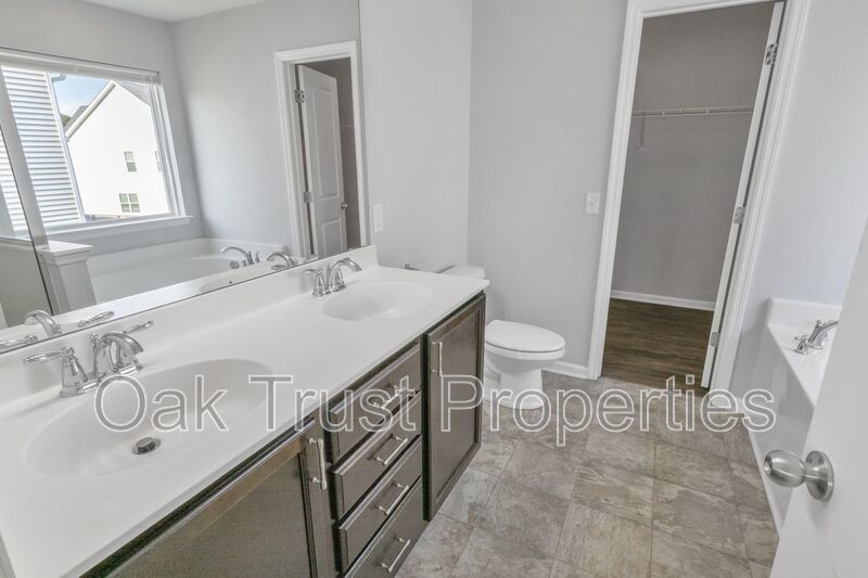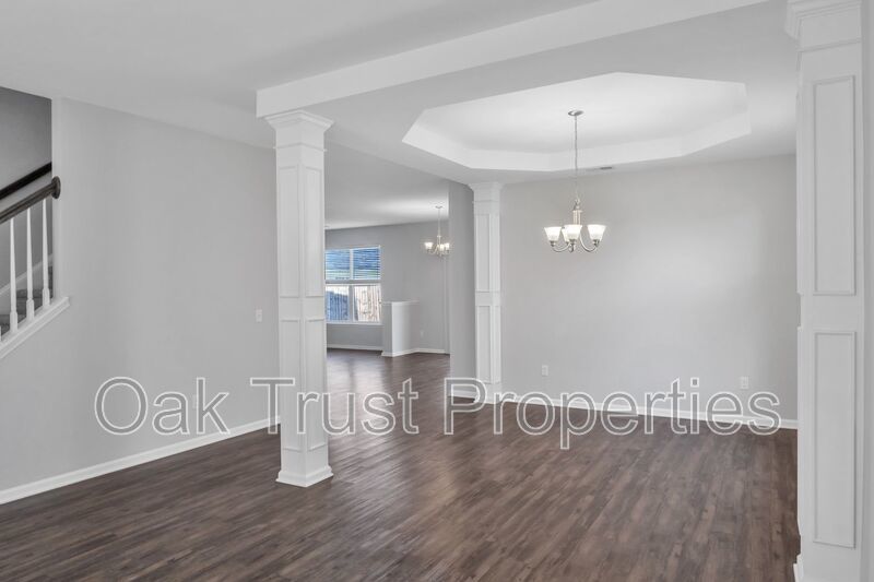 Step inside to find an open and inviting floorplan with a formal dining area, vaulted and tray ceilings for added elegance, and hardwood flooring throughout the main living spaces. The home also features brand-new carpet, giving the bedrooms and upstairs areas a fresh, updated feel. The kitchen is equipped with stainless steel appliances and ample cabinetry, making it perfect for everyday meals and entertaining. The spacious primary suite features a walk-in closet, dual vanities, a relaxing garden tub, and a separate shower. Outside, enjoy the patio and generous yard space for gatherings or quiet evenings. Washer/dryer connections provide everyday convenience.